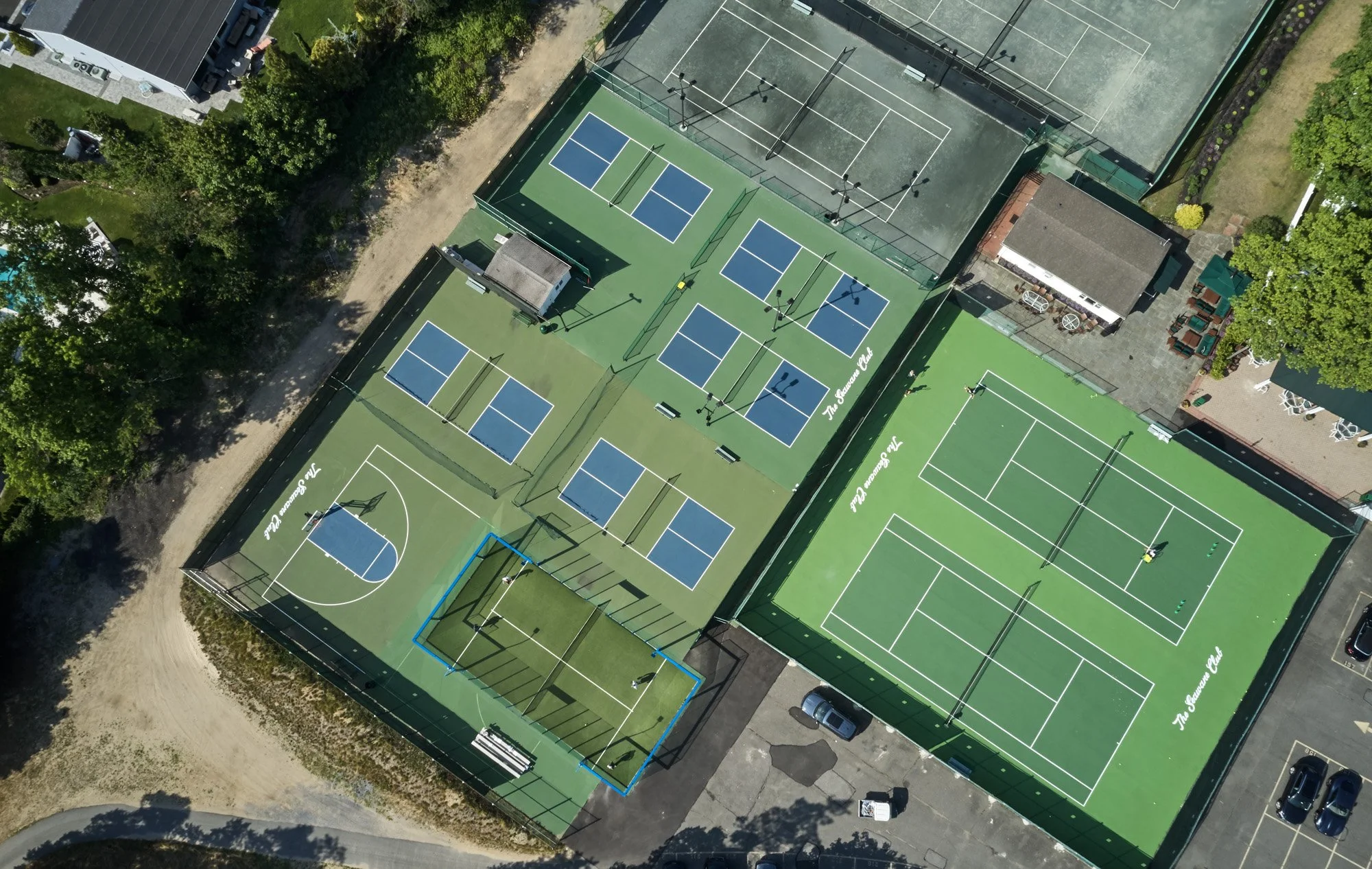The Seawane Club offers five Pickleball courts. Pickleball, is a year-round paddle ball sport that combines elements of badminton, table tennis, and tennis. Lighting is available for members for evening play.